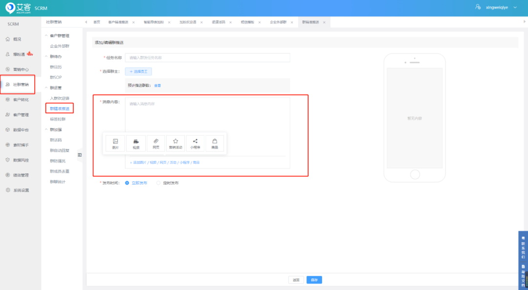 頁面路徑:社群營銷-群精準推送-新增