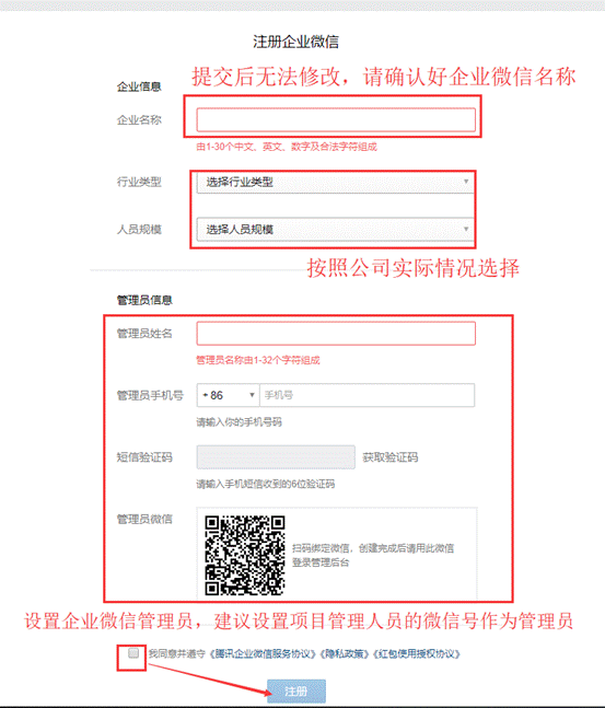 2)微信企業號創建企業微信方式:一個微信企業號只能對應一個企業微信。