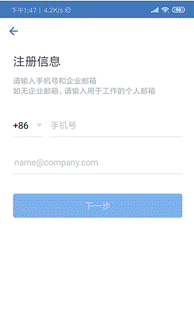(3)第一次使用,這里會讓你輸入手機號以及工作郵箱進行注冊,輸入相應信息,點擊【下一步】