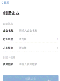 (4)進入創建企業頁面,輸入企業名稱、行業類型、人員規模以及真實姓名,然后點擊【創建企業】