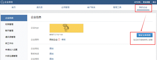 路徑:我的企業——企業信息——驗證主體信息——提交資料驗證
