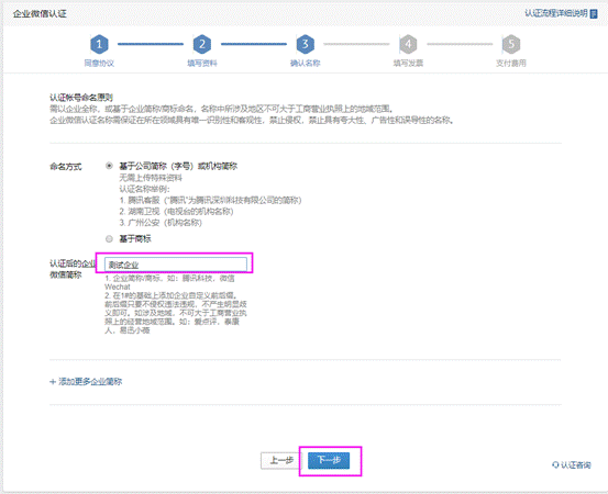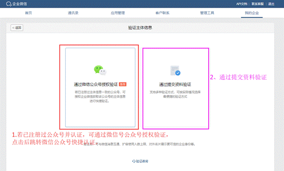 進入企業微信->企業登錄->我的企業->企業信息->驗證主體信息->通過提交資料驗證->企業微信認證->認證->全新認證(快捷認證)