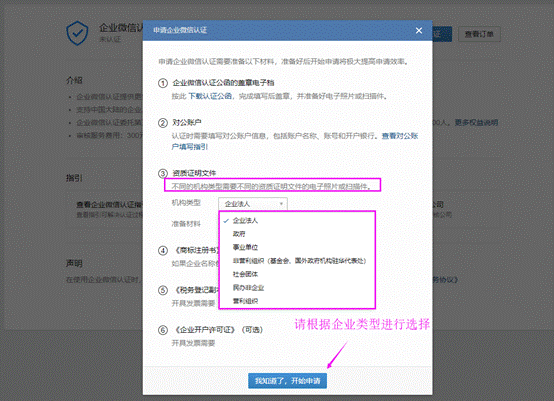 5)選擇公司具體的機構類型(機構類型不同,上傳認證文件有區別)