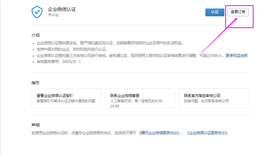 路徑:企業微信——我的企業——企業信息——驗證主體信息——通過提交資料驗證——企業微信驗證——查看訂單