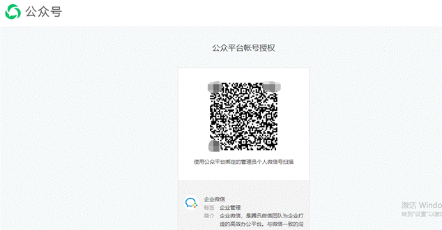 3)使用公眾號平臺綁定的管理員微信號掃碼授權