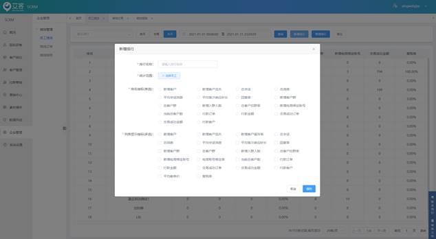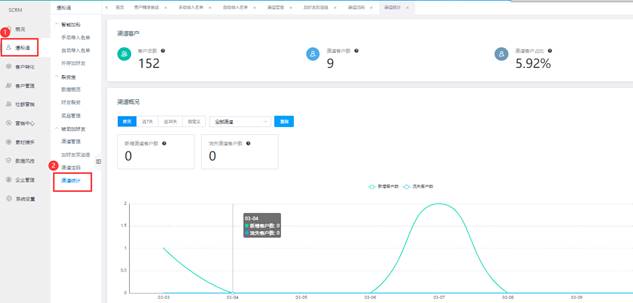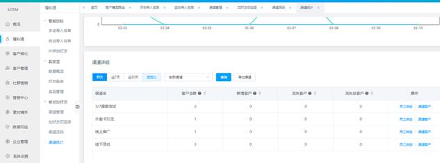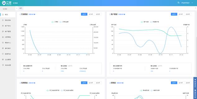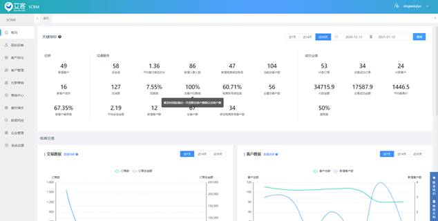 1.1企業的核心數據看板,展示企業在拉新、溝通服務、成交業績等方面的數據統計;