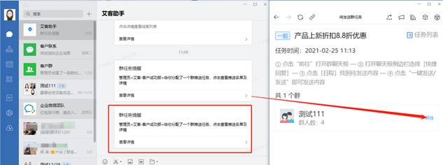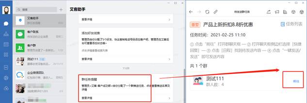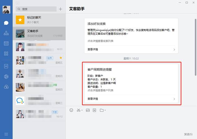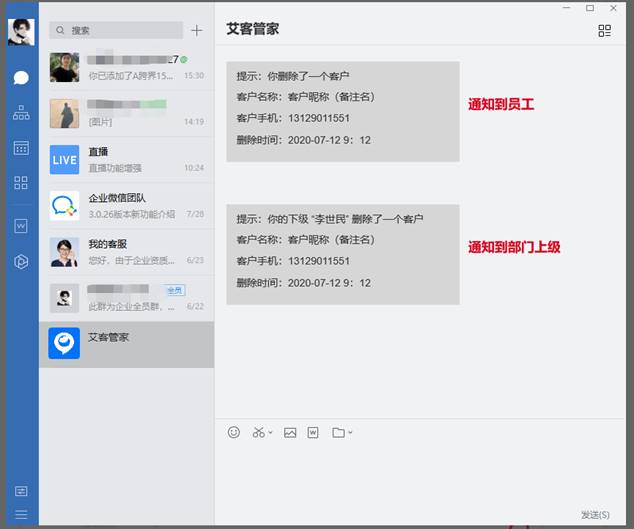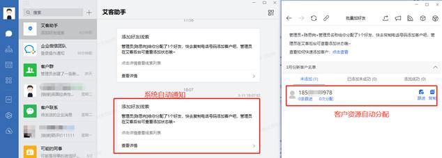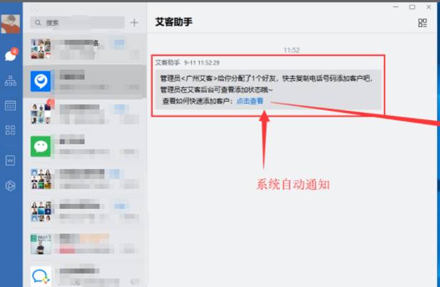 在任務時間段內,系統會執行加粉任務,將有意向的手機號通過 “艾客助手” 通知選中的員工。