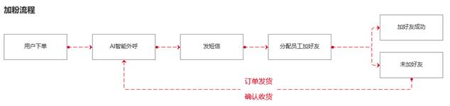 l AI外呼+分配員工加粉:是指有新的訂單收貨手機號時,會導入的手機號進行AI智能外呼,用戶接到電話確定有加好友意向時,接著會將有意向的手機號分配給選中的員工,員工會收到實時提醒,要求員工實時去添加當前這個手機號為好友