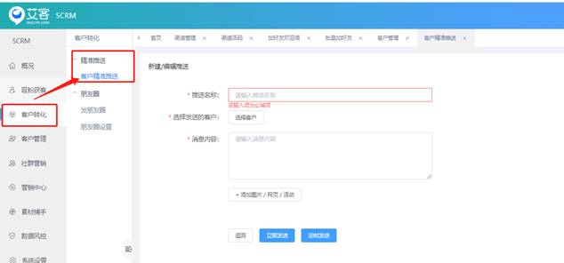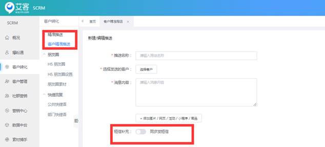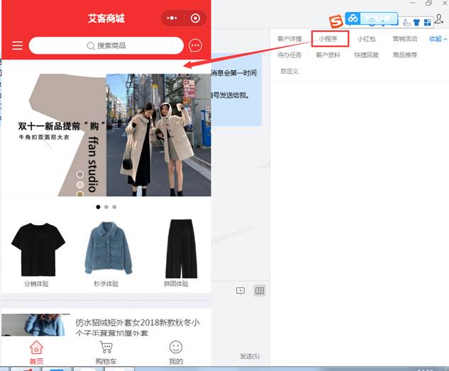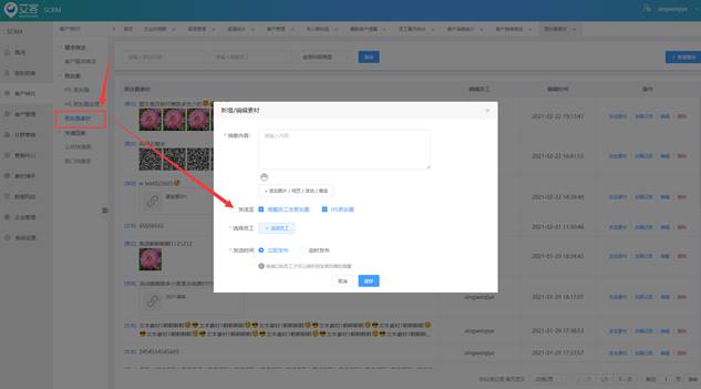 在艾客scrm后臺小程序素材庫添加后,即可在此進行展示并轉發