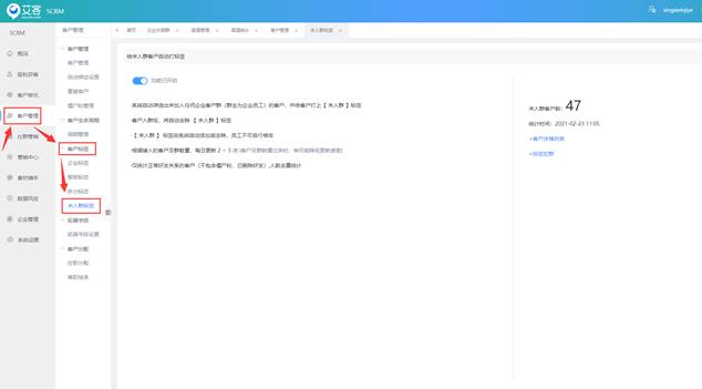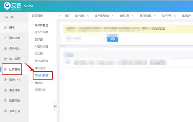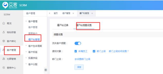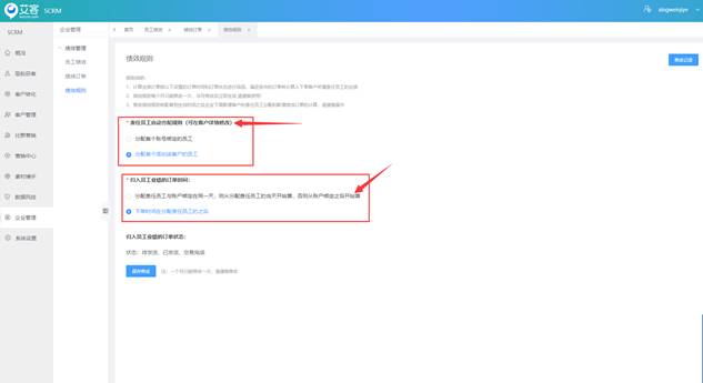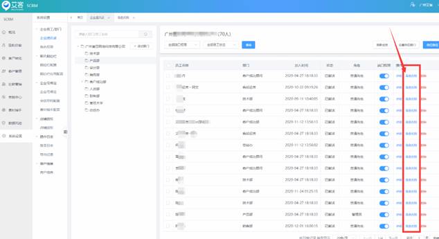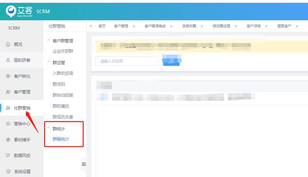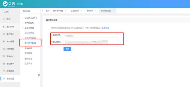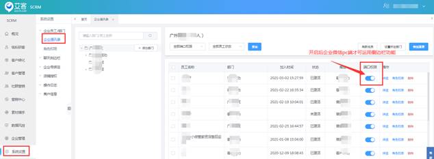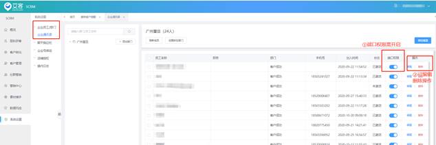 使用條件:以下功能需給對應員工在艾客scrm后臺開啟端口權限才可使用,如下圖