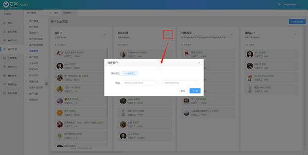 用于記錄該客戶生命周期、互動跟進情況,支持篩選近3個月/6個月/一年/全部時間段周期軌跡,員工可根據該客戶的周期跟進回訪,并實時同步填寫跟進記錄