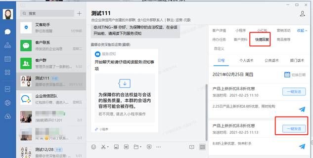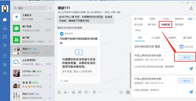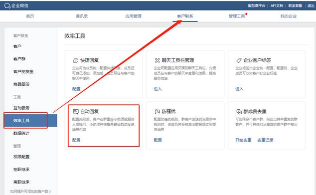 操作路徑:企微管家后臺-客戶轉化-快捷回復