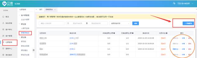 任務下方后,管理員可在管理端查看任務執行的詳細,若員工沒有執行添加動作,可手動點擊提醒,系統將重新發消息給員工讓他去添加客戶;