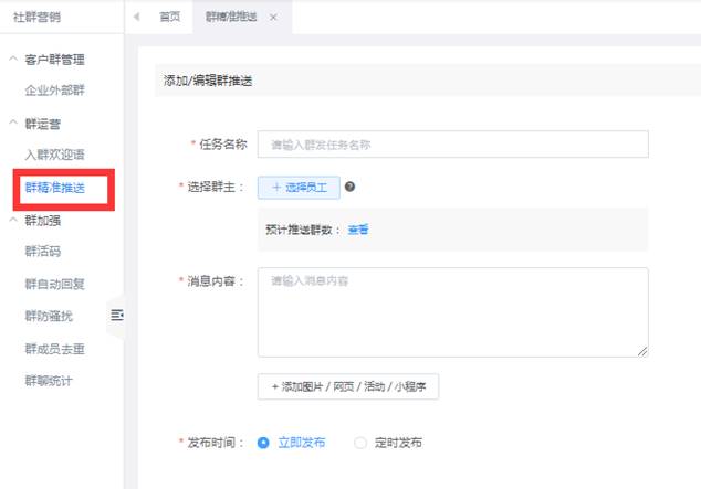 l 發短信+分配員工加粉:會給導入的手機號發送商家指定的短信內容,通過短信觸達后再分配給選中的員工,員工會收到實時提醒,要求員工實時去添加當前這個手機號為好友