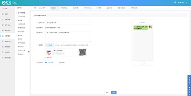 d、保存-創建任務,系統會通過 “艾客助手” 通知選中的員工,那個管理員給他們分配了客戶資源。