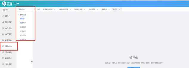 營銷活動主要包含以下功能場景(曬評價、曬圖有禮、訂單返利、返利商城、抽獎活動、兌換商城)該功能目前是基于艾客公眾號后臺操作設置;設置成功后,通過pc端發送對應活動給到粉絲參與