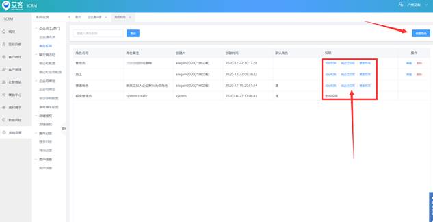 操作路徑:【系統設置】——【企業員工/部門】——【角色權限】