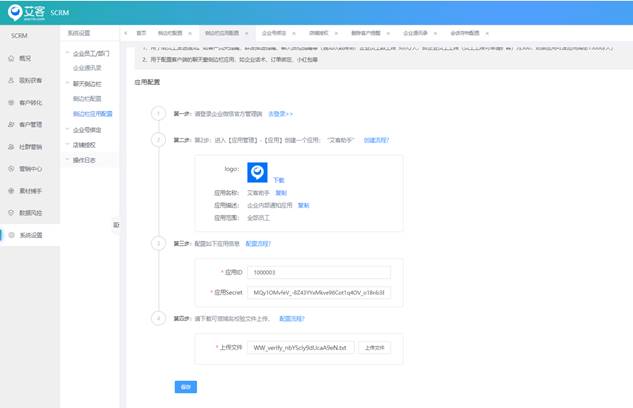 主要用于綁定企業微信后臺,連接數據,否則將無法關聯使用;