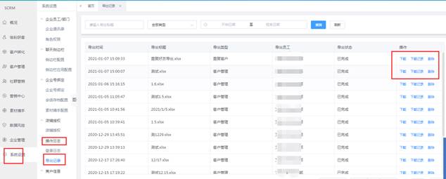 主要查看后臺所有導出數據表格的記錄明細,并可在此進行查看下載和刪除