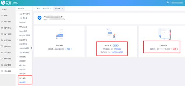 主要便于商戶自查艾客scrm賬戶信息,如版本、端口數量、使用時間;