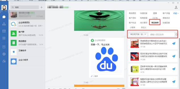 商品推薦當前支持天貓淘寶店鋪、有贊、京東、且前提是必須已成功授權接入該店鋪到企微管家后臺