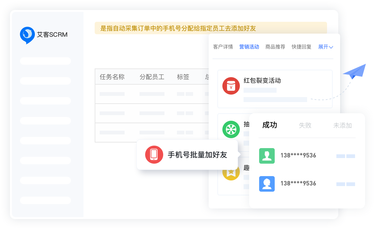利用企業微信和個人微信互通,將收集的手機號直接批量加好友,還能裂變任務多渠道漲粉。