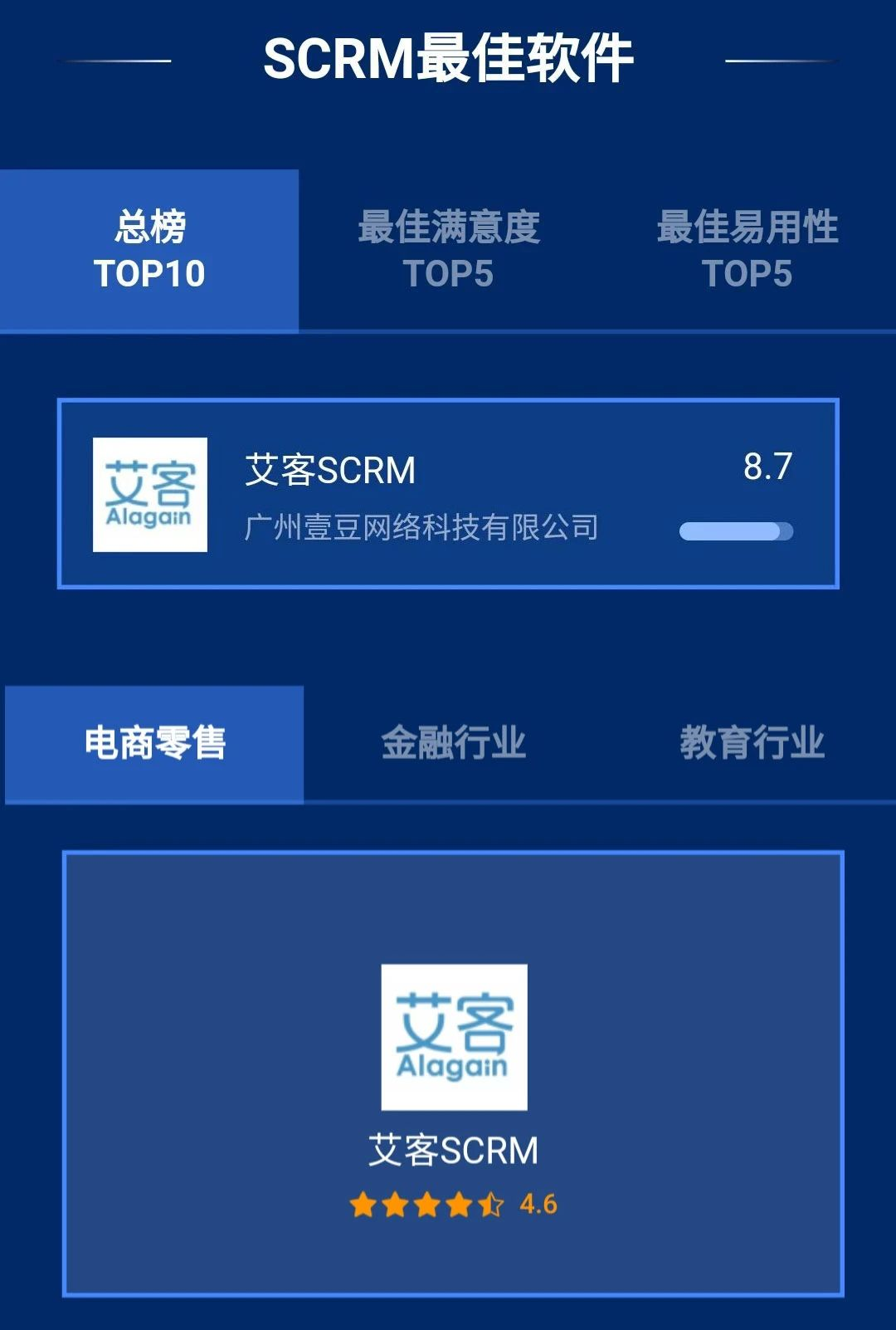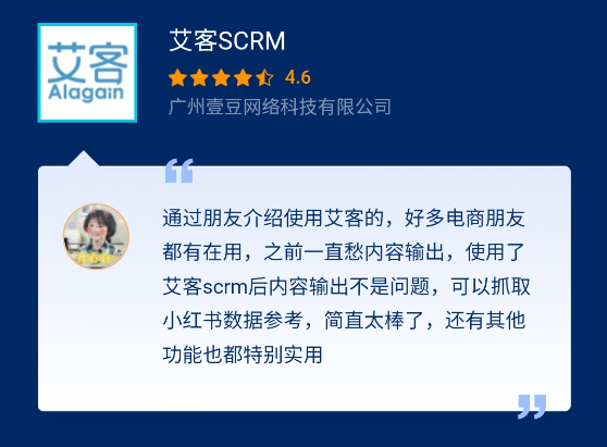 據了解,36氪“企服點評”平臺現已收錄近萬款企服產品,并基于海量用戶的真實評價,借助非人工干預的機器算法進行智能、客觀的評分。此次,艾客SCRM 成功入選,是過萬商家對于艾客產品能力的高度認可。
