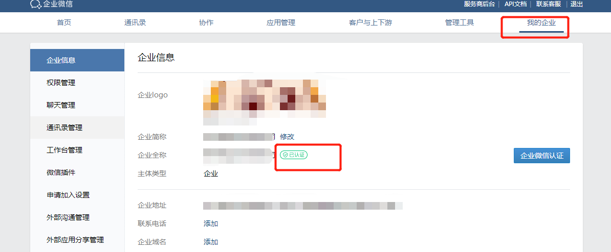 登錄企業微信管理后臺-【我的企業】-【企業信息】-【企業微信認證】根據指引完成認證,完成認證后的企業微信信任度更高,會顯示一個綠色已認證圖標