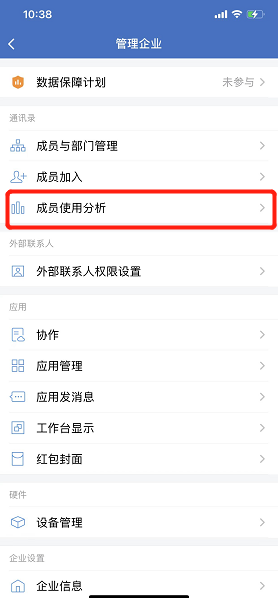 2、保持賬號主體活躍:將公司成員全部添加到企業微信中,并保持最近30天正常使用企業微信人數≥20人,并長期保持,管理員可在【管理企業】中的【成員使用分析】查看使用情況。其次內部溝通、打卡、審批、匯報等都使用企業微信,全面提升活躍度。