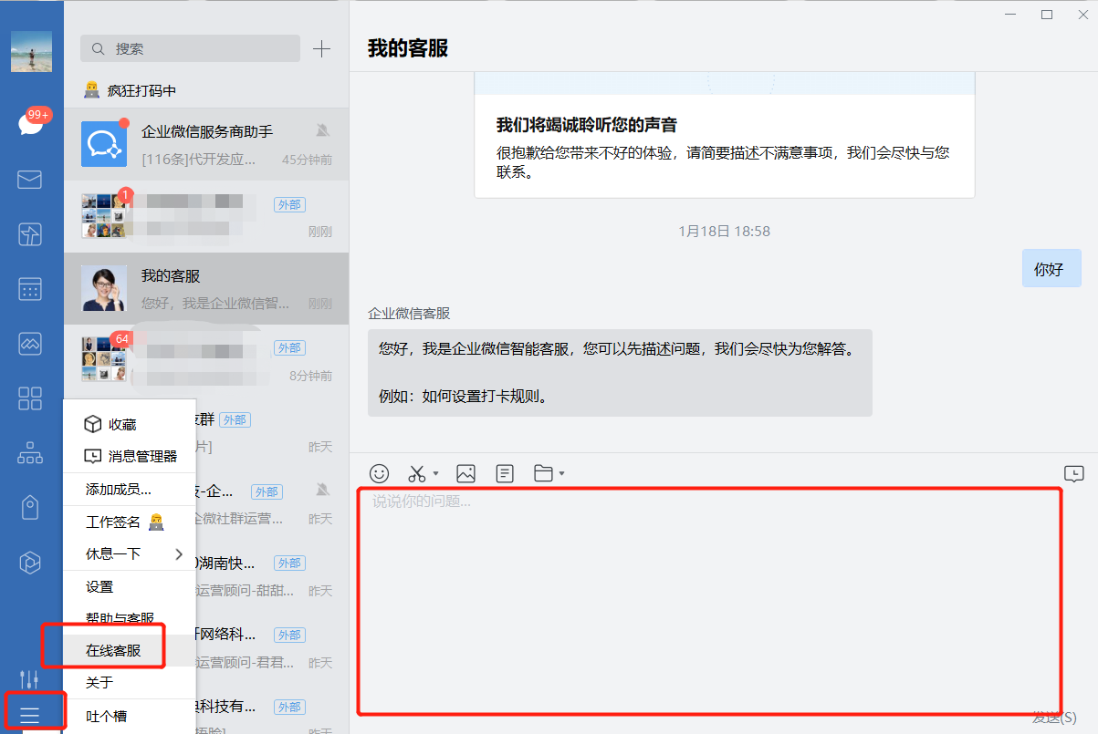 1、直接去企業微信搜索「我的客服」,能解決大部分問題;