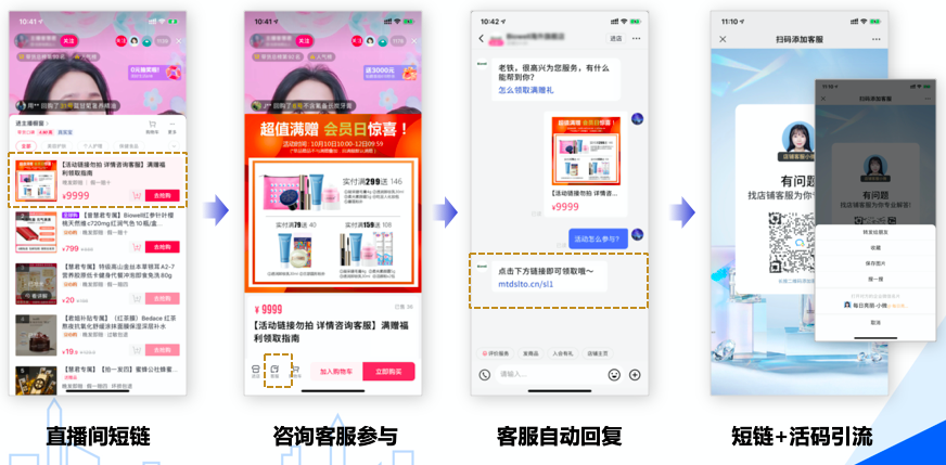 直播間吸粉主要有以下4種方式:1.直播間短鏈;2.咨詢客服參與;3.客服自動回復;4.短鏈+活碼引流