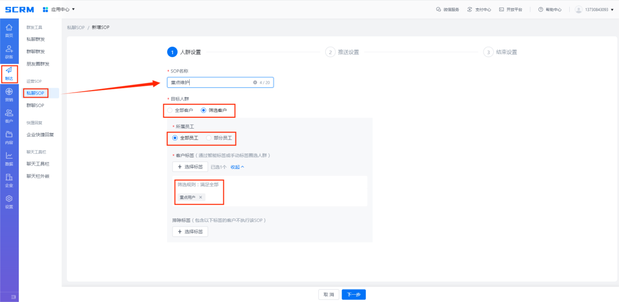 圖2:設置目標用戶人群以及執行計劃的員工
