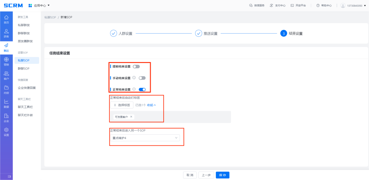 圖5:設置任務結束設置、結束后自動打標簽及SOP