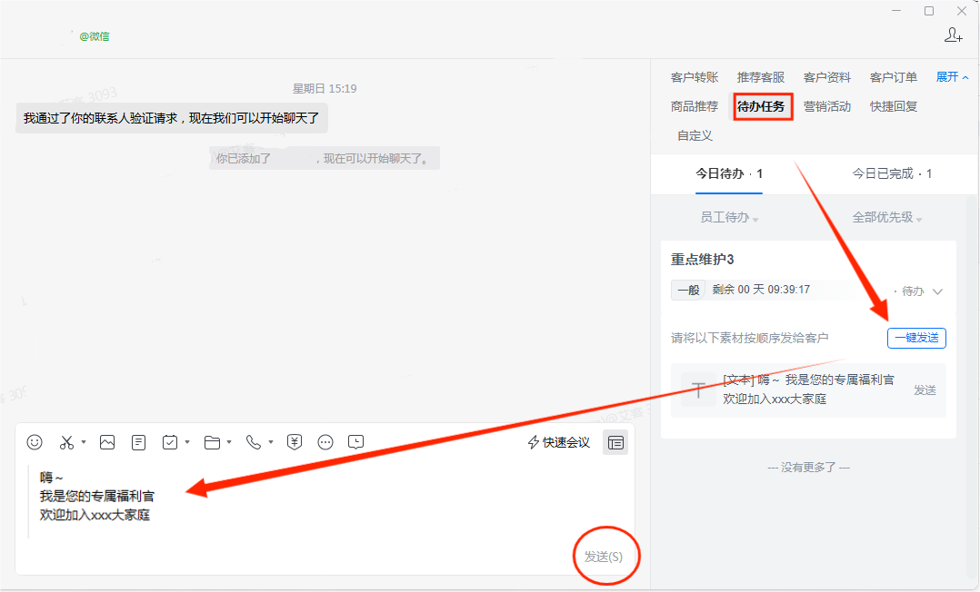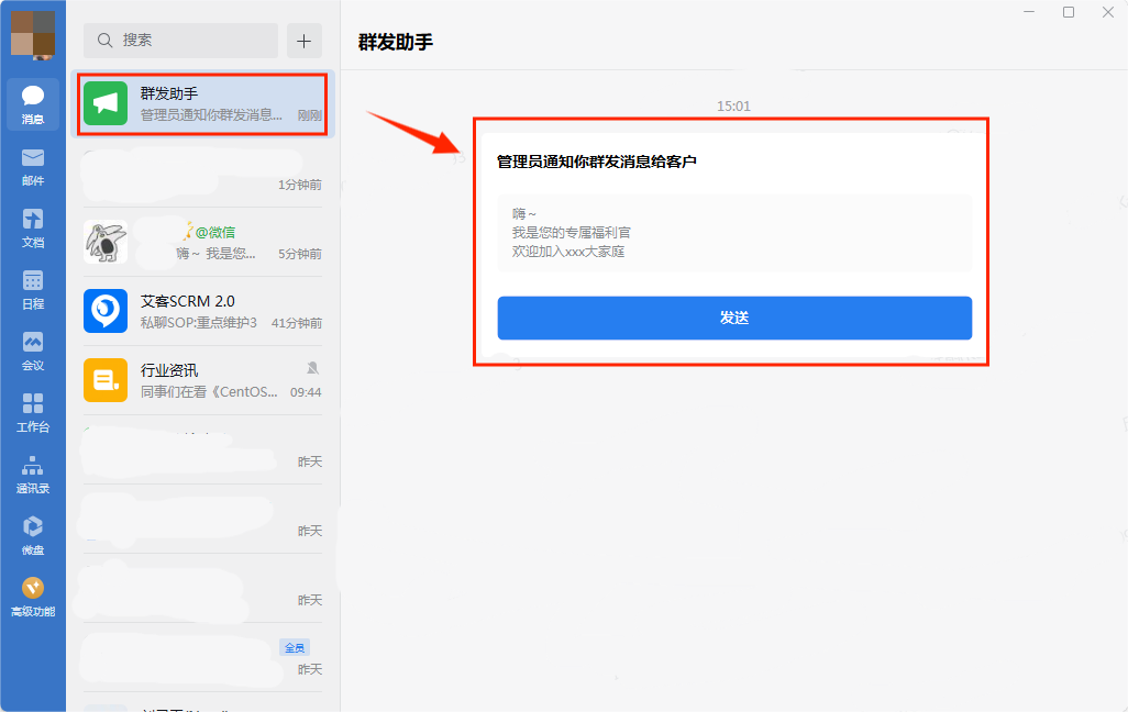 圖8:員工端私聊群發效果