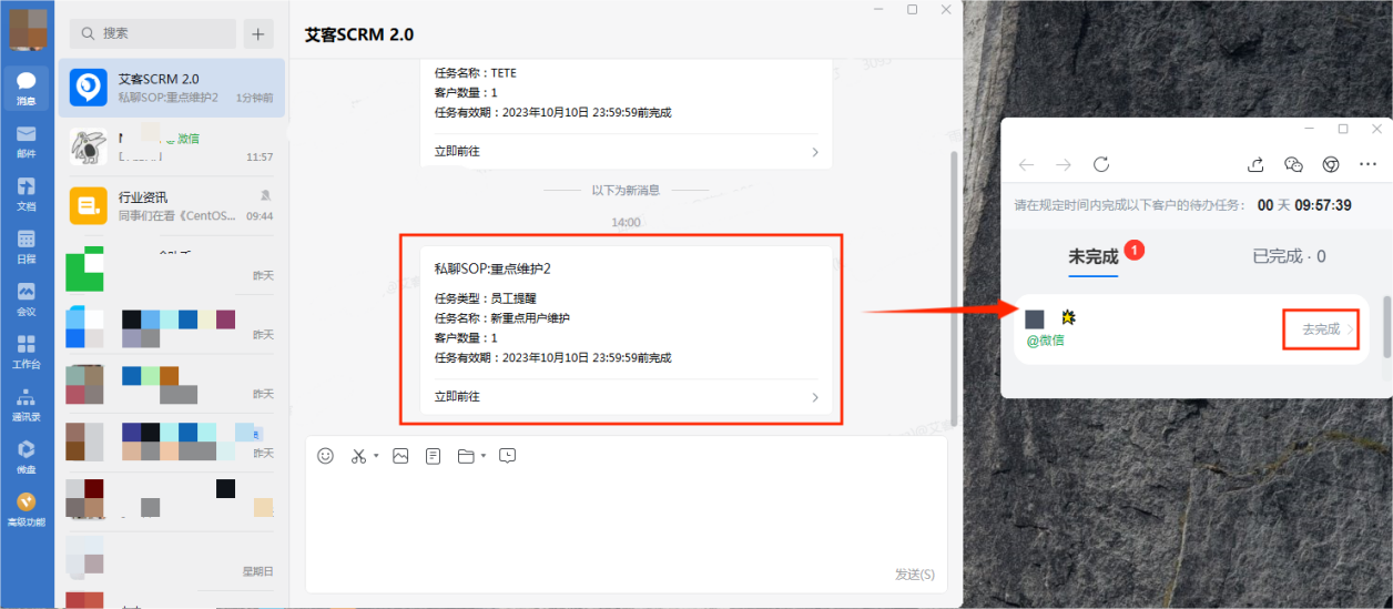 用戶進入人群包后,ADMP直接有效的觸達體系將業務分發到不同的服務層,按照設定的時間向員工發送待辦/提醒/私聊群發,員工賬號可在企業微信接收提醒,在用戶聊天界面可完成相應指令,執行規定的營銷計劃。ADMP直觀有效的觸達體系可以促成內容的高效觸達,提高終端展示的運營效益。
