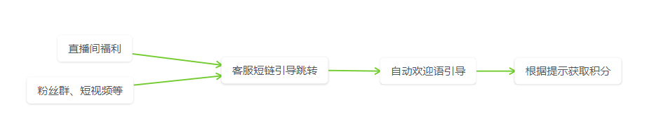 直播間主播口播說明準備了福利活動,所有直播間直接下單的訂單都可以去兌換積分,具體怎么兌換積分,點擊x號鏈接去聯系客服。通過平臺客服的自動引導,發送給咨詢的粉絲加企微的跳轉短鏈,在此可以通過自動引導和x號鏈接的內容相一致,增加粉絲加粉率;