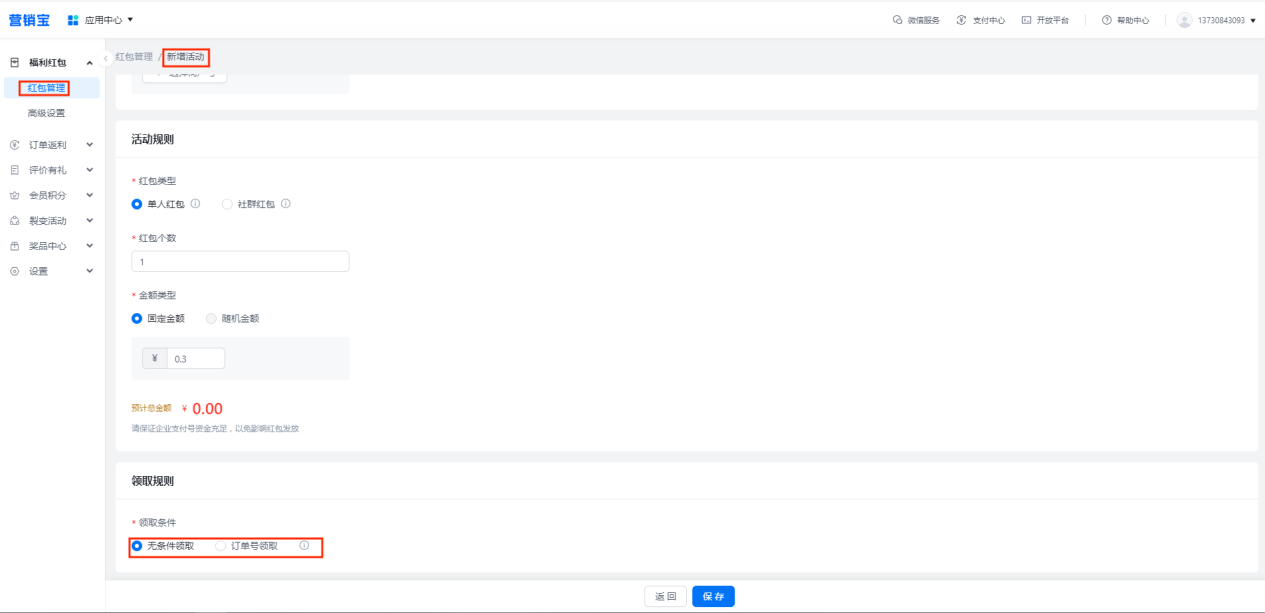 圖1:工具路徑:艾客SCRM-營銷寶-福利紅包