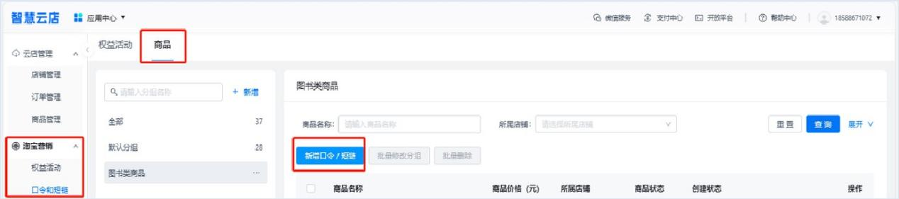 圖1:工具路徑:淘寶營(yíng)銷-口令和短鏈-商品-新增口令/短鏈