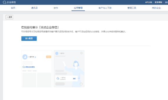 PC端操作路徑:企微后臺—應(yīng)用管理—視頻號—在視頻號展示「添加企業(yè)微信」