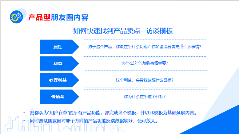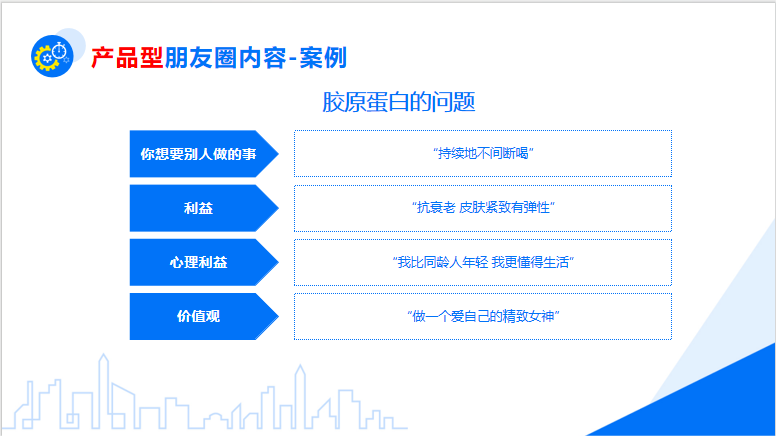 產(chǎn)品型朋友圈目的在于讓粉絲相信你的產(chǎn)品并且想要購買你的產(chǎn)品,而發(fā)布的底層邏輯就在于販賣焦慮,同時解決方案和未來期望,一種方法是站在用戶視角分析買的原因或不買的阻礙,另一種圍繞產(chǎn)品本身,展開使用功能上需要強調(diào)的關(guān)鍵點。具體可以進行產(chǎn)品介紹、產(chǎn)品功能、產(chǎn)品搭配及活動介紹等。