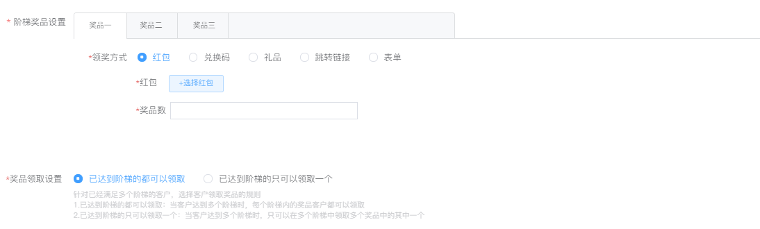 2、在獎(jiǎng)品的設(shè)置上,還可以進(jìn)行相關(guān)階梯設(shè)置。