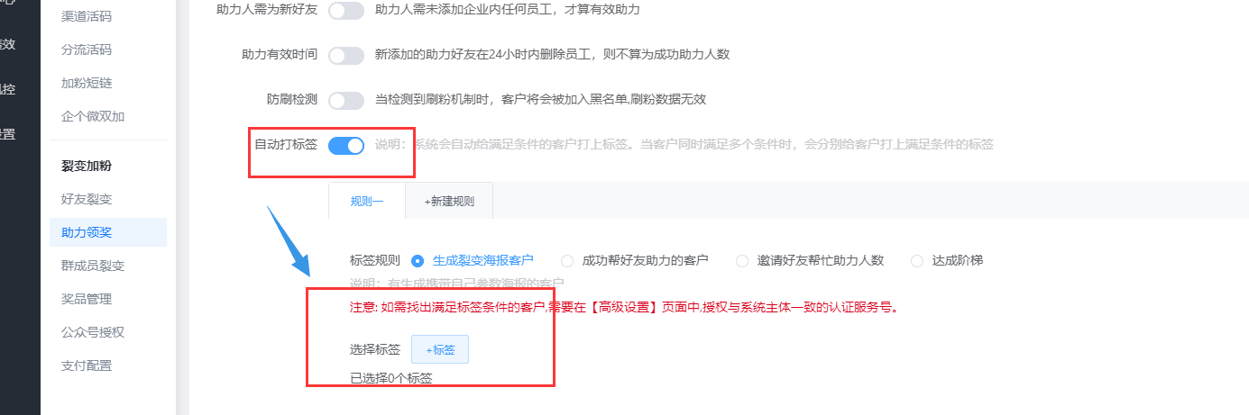 3、在規(guī)則設(shè)置里面有多項(xiàng)選擇,企業(yè)可以需要進(jìn)行開啟或者關(guān)閉。根據(jù)條件自動(dòng)打上標(biāo)簽,方便后續(xù)的跟進(jìn),了解更多詳情,歡迎申請(qǐng)免費(fèi)試用!