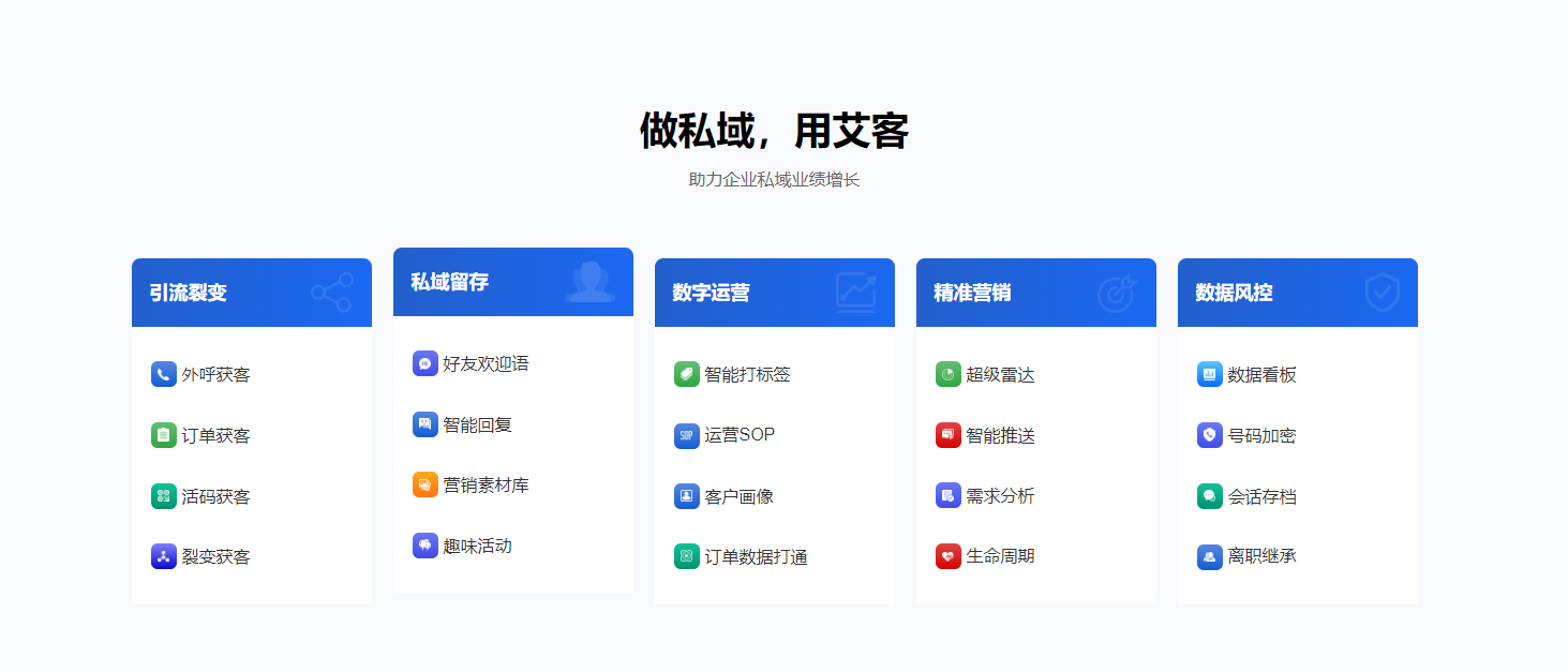 除了方便企業管理客戶,企業微信在客戶運營上也有不少功能,不過企微提供的功能還很基礎,已經滿足不了許多企業的運營需求,這時候可以使用企業微信營銷管理系統,在這里特別推薦艾客scrm系統,艾客基于企業微信開發了眾多的企微輔助工具,構建從引流獲客、客戶運營、營銷轉化、數據風控等全方位打造私域營銷閉環,幫助企業更多進行企業微信營銷,更好做好客戶關系管理。