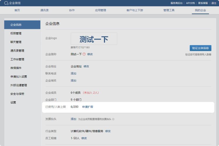 企業微信添加好友上限了,可以申請擴容。前提是企業微信是通過認證/驗證過的。申請擴容步驟是:企業微信管理員登錄企業微信管理后臺,選擇“我的企業”——“企業信息”——“人數上限”——“申請擴容”。
