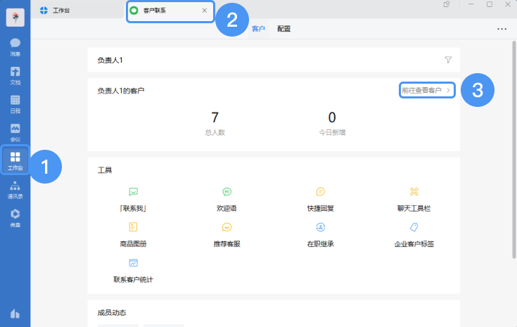 業務負責人在電腦端進行導出企業客戶資料:登錄電腦端企業微信,在“工作臺”——“客戶聯系”——“前往查看客戶”——“導出”,導出客戶資料。