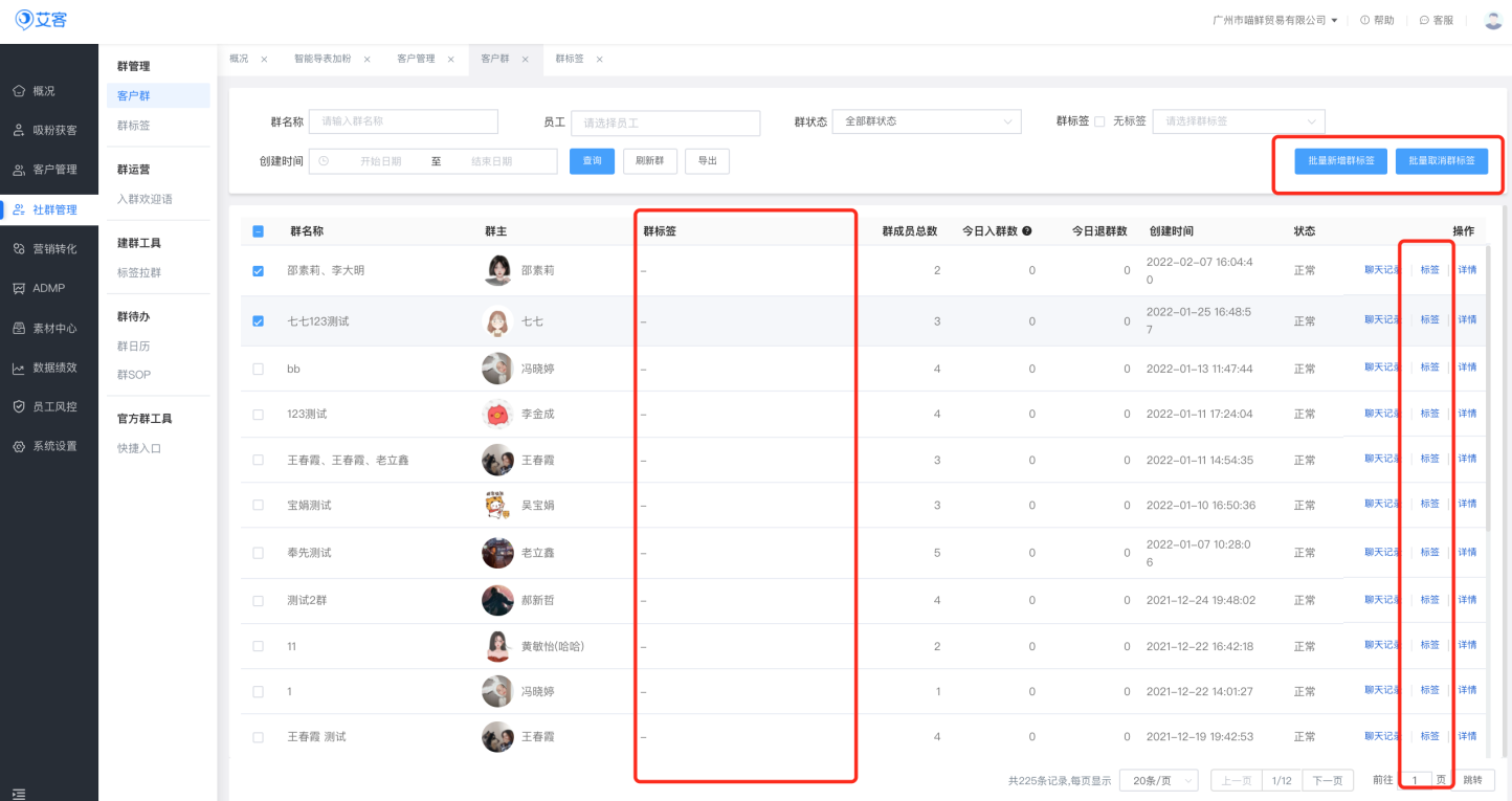 在給客戶群打標(biāo)簽方面,可以選擇給單個客戶群打標(biāo)簽,也可以選擇批量給群打標(biāo)簽。