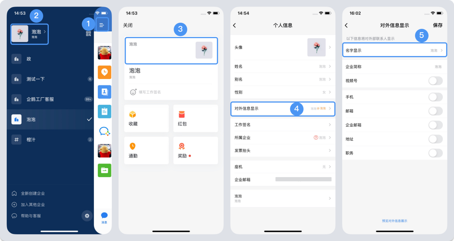 登錄企業微信手機端,點擊“我”進入到個人信息頁面,就可以對“別名”或者“對外信息顯示”進行相關的設置了。