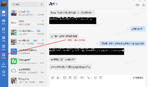 1、在電腦端登錄企業(yè)微信,然后點擊進入【工作臺】。
