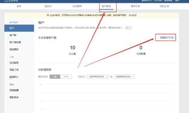 如果是管理員將客戶共享給其他員工,可以進入企微管理后臺,點擊【客戶聯系】—【查看客戶列表】,就可以查看客戶名單。