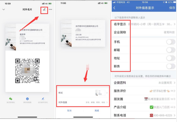 我們只需要回到個人名片信息頁面,點擊頁面右上方的小鉛筆標志,就能對企微名片樣式和其他信息進行修改,最后根據需求添加信息即可。